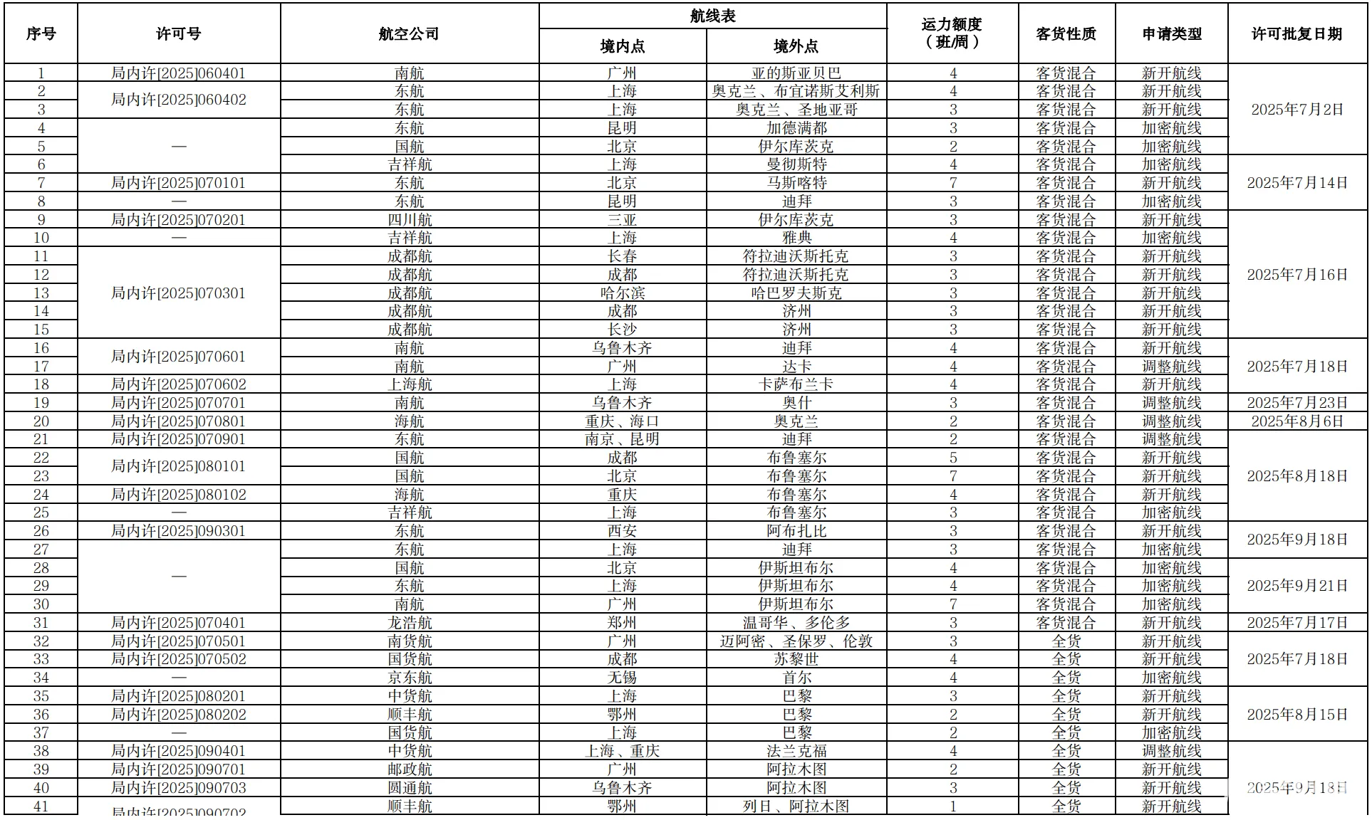 近日,民航局运输司发布了2025年第三季度国际航线经营许可情况及2025年9月国际航线临时加班和包机审批情况。...